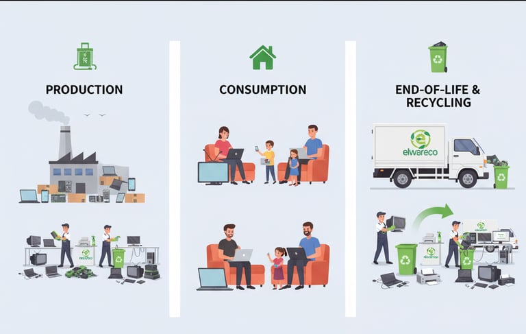 Elwareco provides collection bins at various public locations, corporate offices, and retail stores to encourage responsible disposal of small electronic devices. We also organize collection drives in collaboration with communities and organizations.