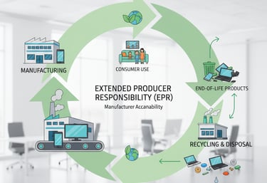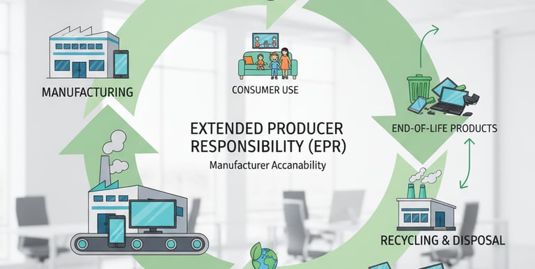 Extended Producer Responsibility (EPR), also known as Environmental Protection Responsibility (EPR), expands manufacturer accountability beyond the factory, covering end-of-life product management after consumer use.